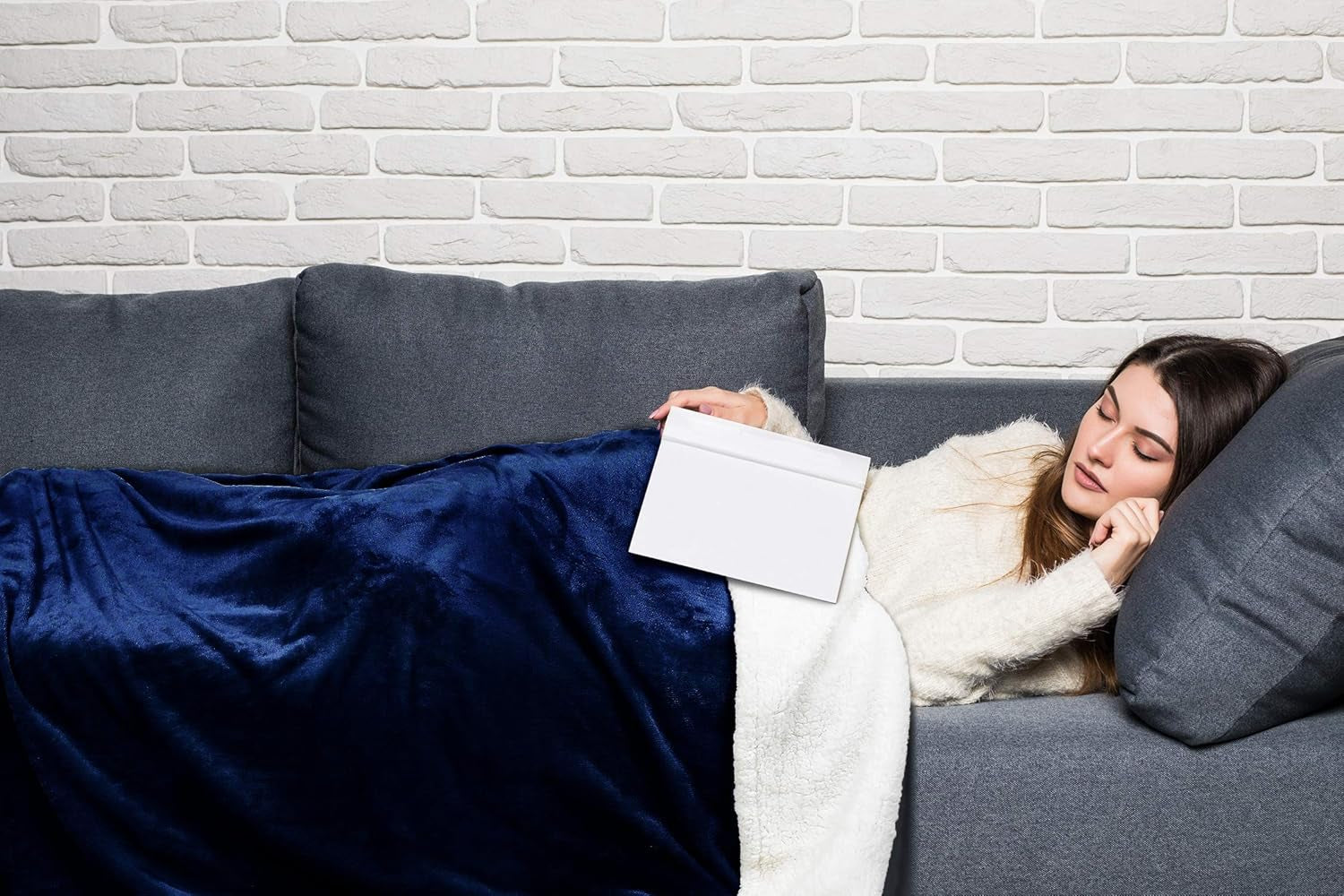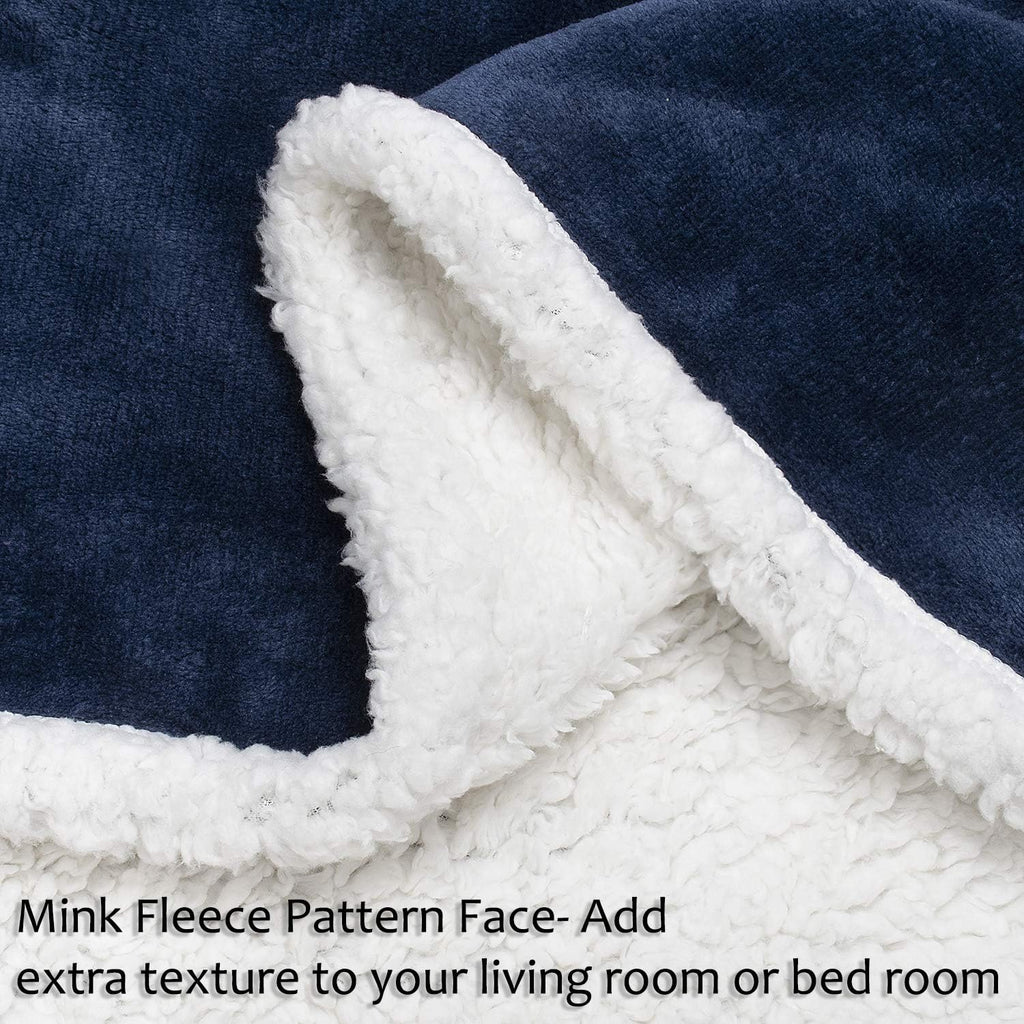 Blue Sherpa Throw Plush Blanket Size 50" X 60" Bedding Fleece Reversible Blanket for Bed and Couch, Super Soft Comfy Warm Fuzzy TV Blanket