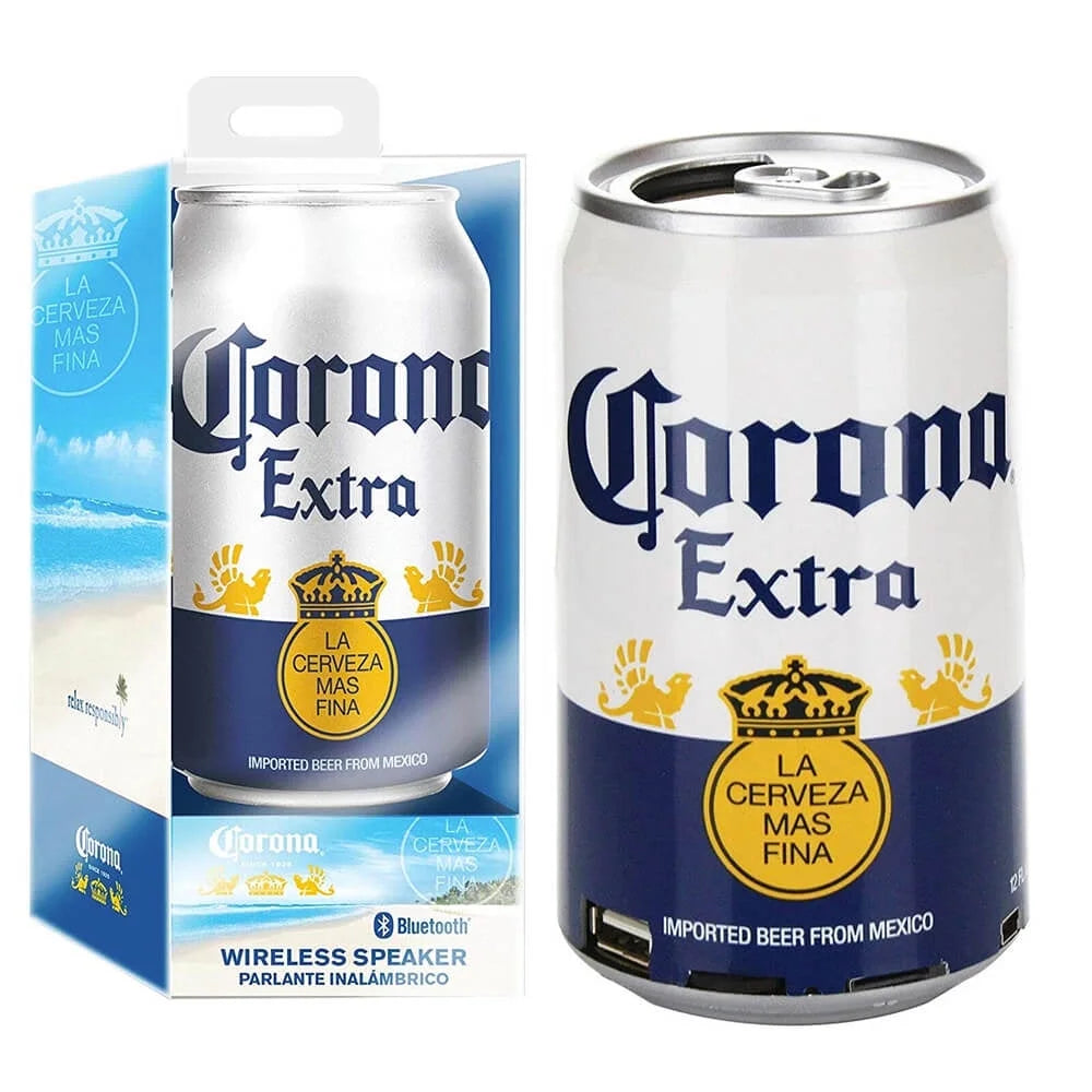 Corona Bluetooth Can Speaker. Features Corona can design with AUX port, USB port, and TF Card. Actual Corona can size. Rechargeable. Officially licensed